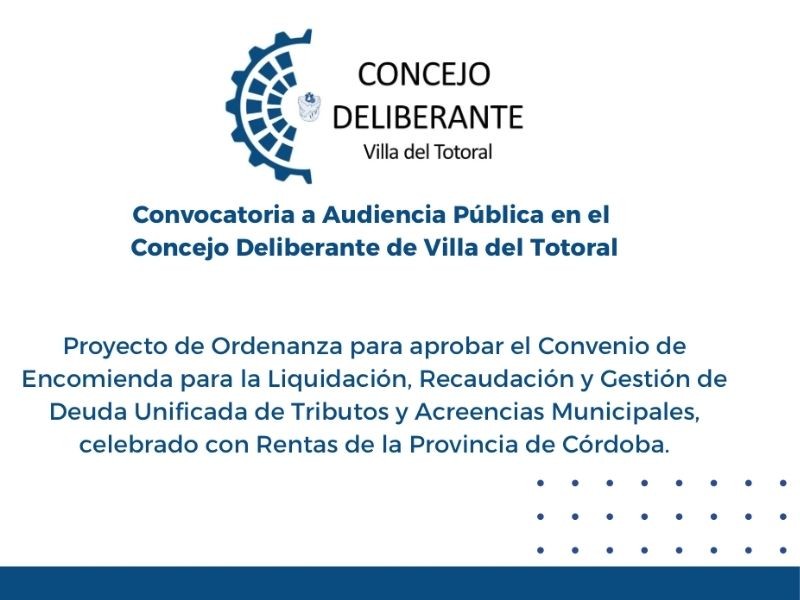 Convocatoria a Audiencia Pública en el Concejo Deliberante de Villa del Totoral
