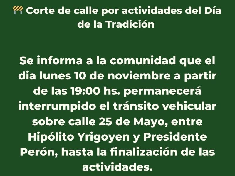 Corte de calle por actividades del Día de la Tradición